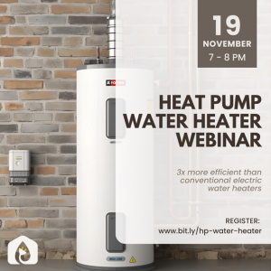 Join our upcoming webinar on November 19th, 7-8pm, to learn everything you need to know about switching to a highly-efficient heat pump hot water heater, which can help you eliminate the use of fossil fuels (if you have a gas heater) or improve the efficiency of your traditional electric hot water heater by up to 3x. Discover how you can maximize savings by stacking Mass Save instant rebates for qualifying heat pump water heaters with federal tax credits that are set to expire December 31, 2025.