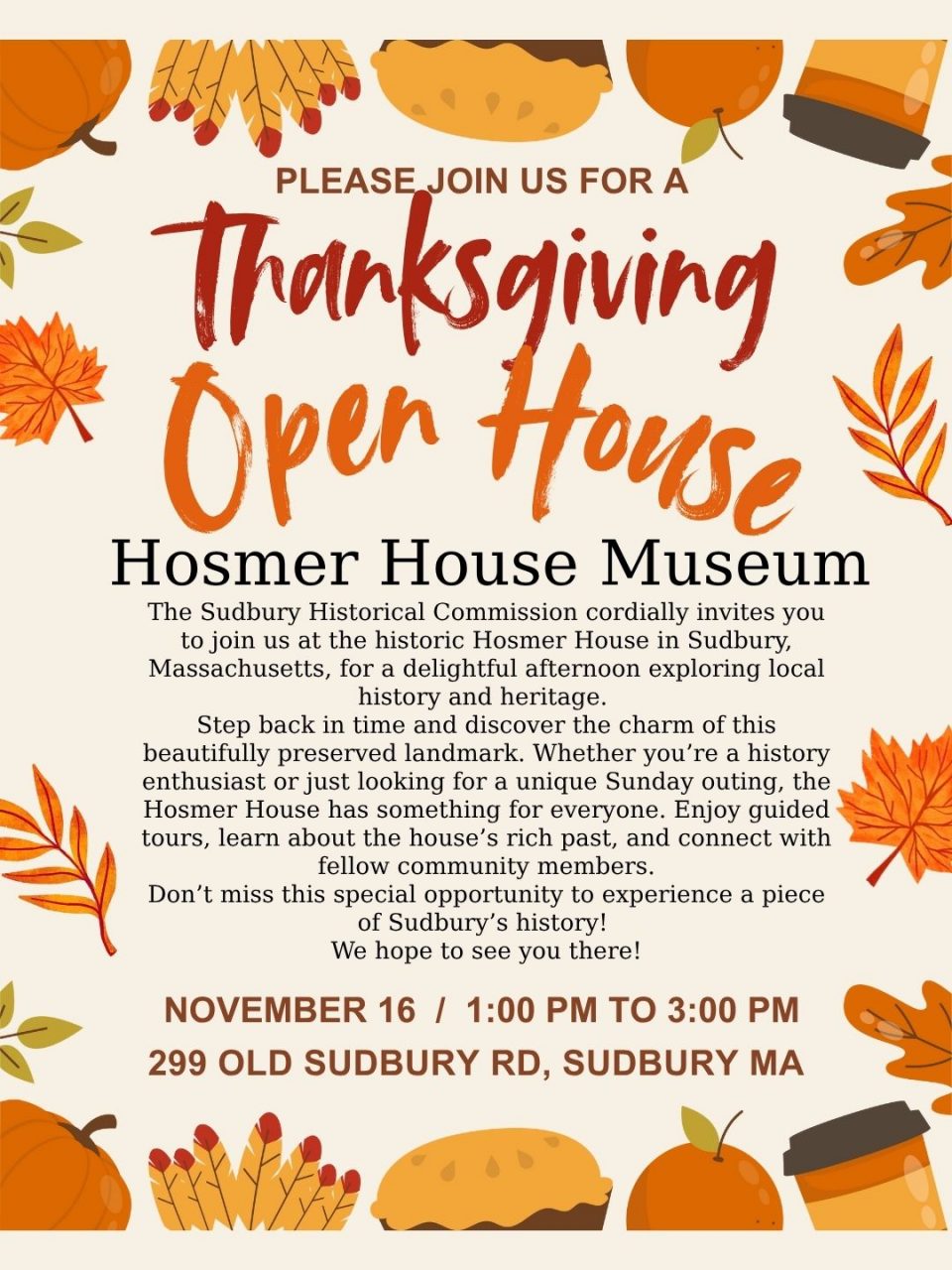 Hosmer House Open November 16th 1:00 Pm to 3:00 Pm