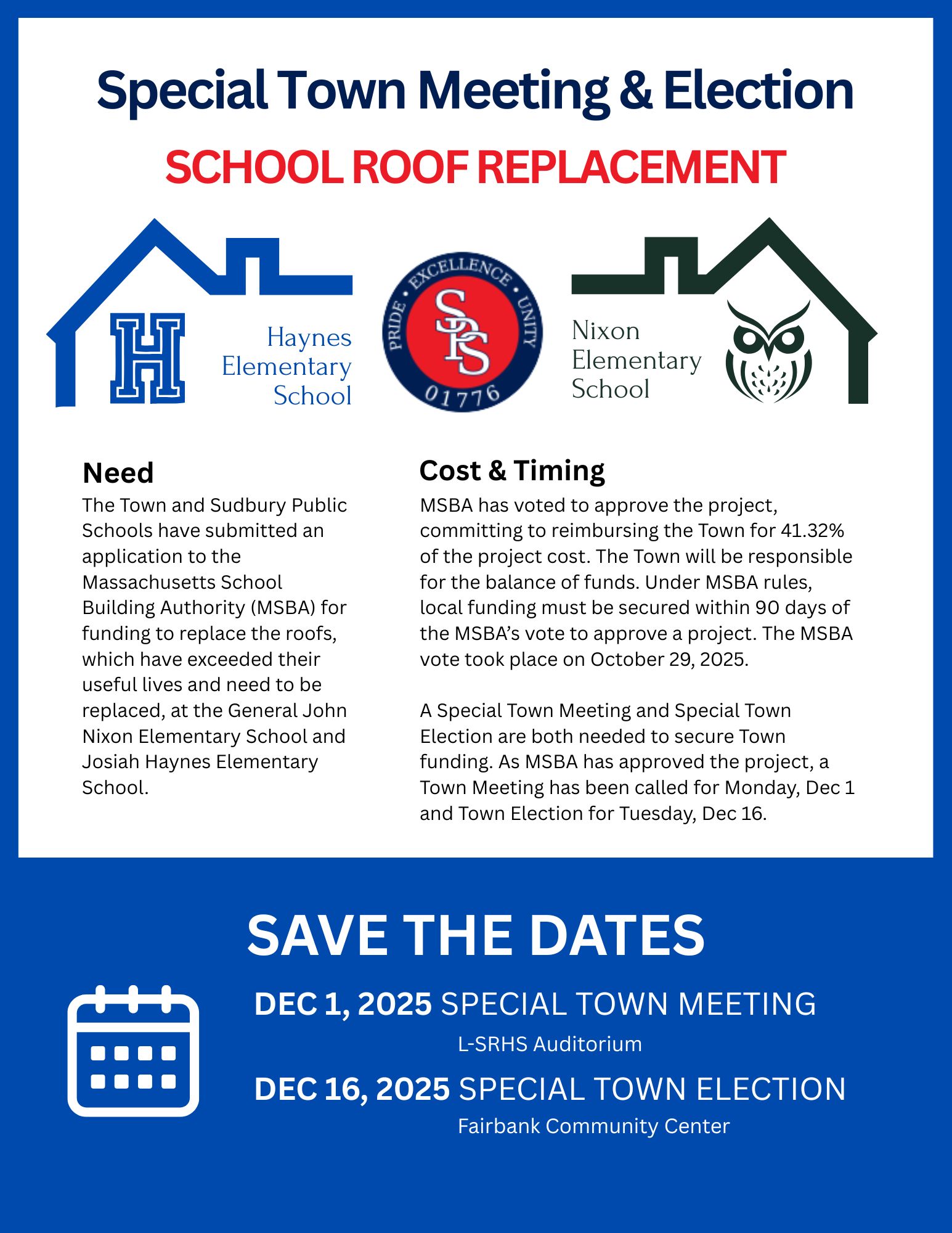 Please see Sudbury 2025 Special Town Meeting Warrant for additional details.